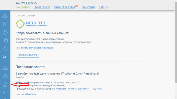 Настройка Виртуальной АТС Нью-Тел 1. Войдите в Личный кабинет Нью-Тел